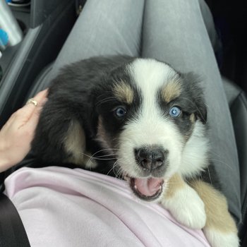 Sarah & Eric wanted an Australian Shepherd puppy for awhile, but pre-pandemic, they traveled twice a month both for work and fun...so when the city of SF issued a Shelter-in-Place order in late March and their companies told them they could work from home, they knew it was an opportunity to fulfill their dream that they couldn't pass up. Ziggy has been their daily companion and best friend along with their cat Theo ever since. Most of you know that they are reluctant to go anywhere without the Zigster!